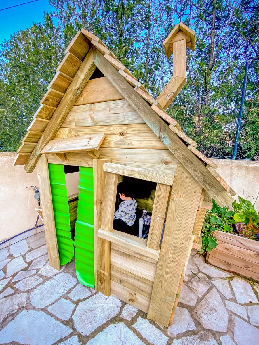 Dentro de casa tenemos una casita Waldorf (que ya te presenté en este post), pero desde que mi hijo cumplió los dos años y medio y comenzamos a observar esta necesidad, hemos estado buscando opciones para crearle una casita de juegos en nuestra terraza y no acabábamos de encontrar nada que fuese apropiado, para estar en el exterior, que fuese de calidad, duradero y no muy disparado de precio.
