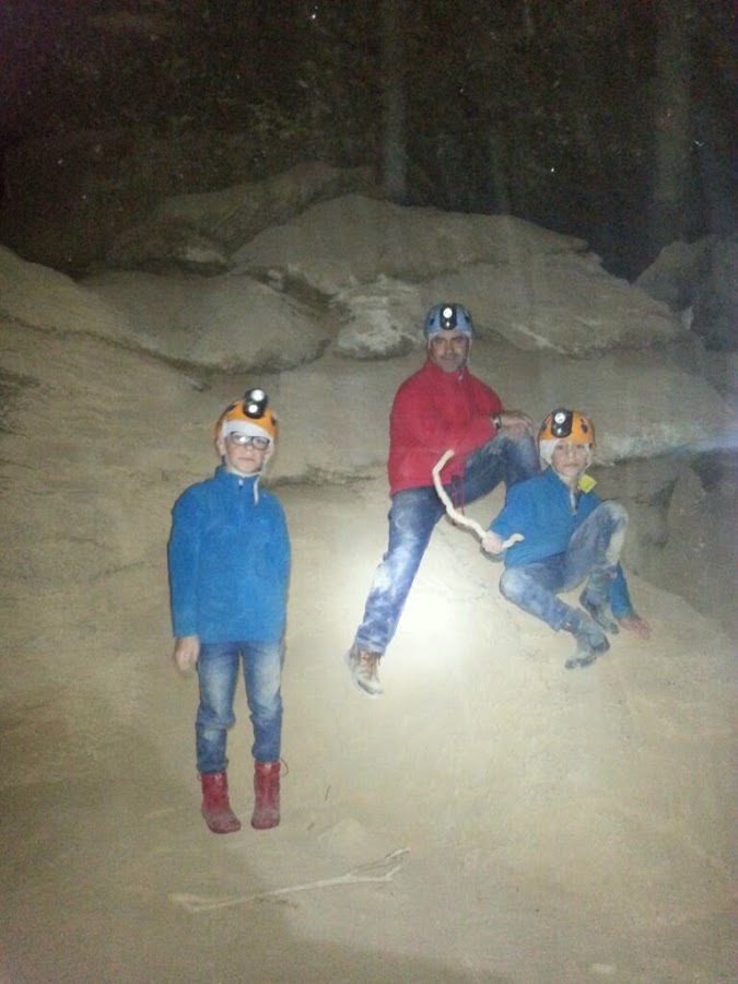 Enseñarles a los niños la formación de estalactitas y estalagmitas y el brillo de los cristales de yeso es una pasada. Es realmente impresionante la imagen de los cristales como si fuesen estrellas que brillan al ser iluminados con la luz de los cascos. Y es muy divertido la ruta por la cueva, subiendo por las rocas deslizándose por ellas como un tobogán. Para hacer el recorrido es necesario ir acompañado de un guía experto. Las cuevas que son una experiencia muy buena no dejan de tener cierto peligro por lo que no se puede ir sin un monitor que las conozca. Allí mismo hay un restaurante donde comimos un menú muy bueno a un precio más que razonable y en una terraza en la que se estaba de maravilla con vistas al valle.