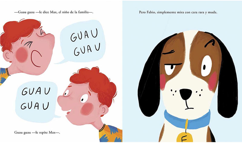 Su familia trata de enseñarles a hacer cosas normales que hacen otros perros. Pero Max el niño de la casa, hará lo posible para que Fabio pueda ser feliz.
