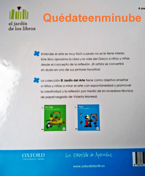 Es un libro muy interesante para nuestros peques que les acerca a descubrir el arte a través de nuestro famoso pintor "El Greco" y en el que a través de sus libros, los niños entran en un mundo del arte, de la creatividad, les hace pensar a la vez que descubren la biografía del pintor, sus cuadros, lo que le gustaba pintar, entrando en su mundo artístico y conociendo más su personalidad con datos interesantísimos.