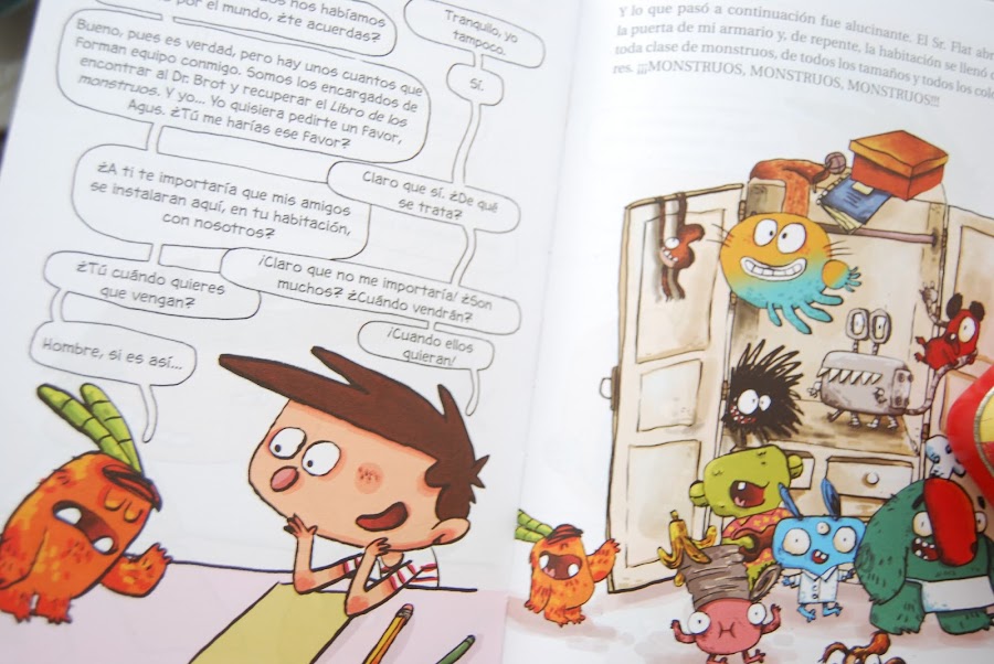 Y buscando este tipo de libros fue como la colección de Agus y sus monstruos llegó a nuestras manos, porque los libros y la literatura nos encantan, pero soy la primera que agradece un libro bien ilustrado, y al igual ocurre con los libros de Zaska, Agus y los monstruos combinan perfectamente el texto con imágenes tipo comic que hacen que leerlo sea mucho más ameno.