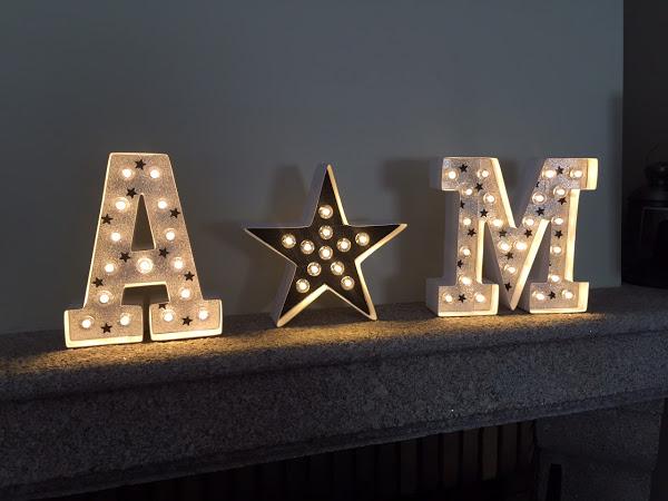 Estas letras y la estrella son de Washitape, una página en la que es difícil resistirse !! El precio es genial, solo 14,95 Euros cada una y luego para decorarlas ya es un poco más personal. Yo me decidí por el washitape de purpurina y hacer las estrellas con un troquel, pero también quedan genial forrándolas de cualquier papel de regalo bonito.