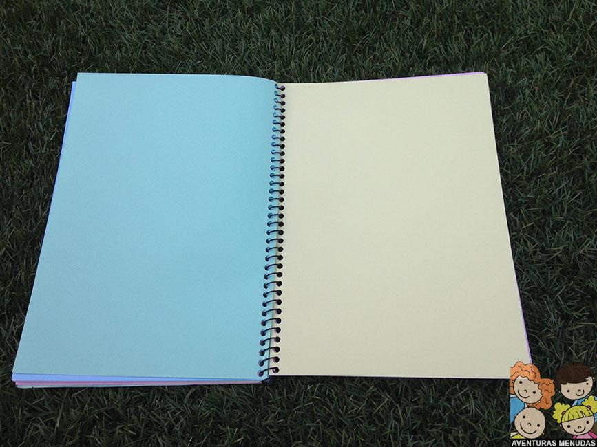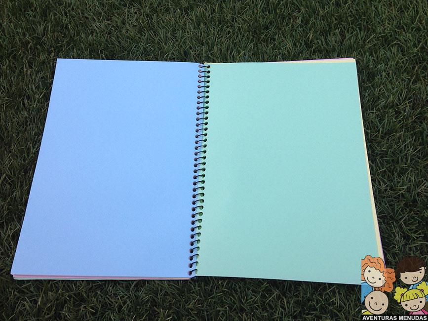 En nuestro caso hemos hecho nosotros la libreta, pero podéis comprarla hecha o usar folios y luego guardarlos en carpetas, o incluso hacerles agujeros y juntarlos con anillas o con hilos. Como más os guste y como mejor lo vayáis a poder guardar y mantener.