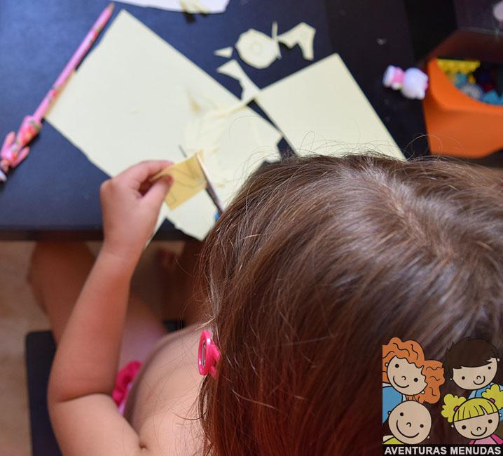 Nosotros empezamos por elegir hojas de colores y cortarlas por la mitad.