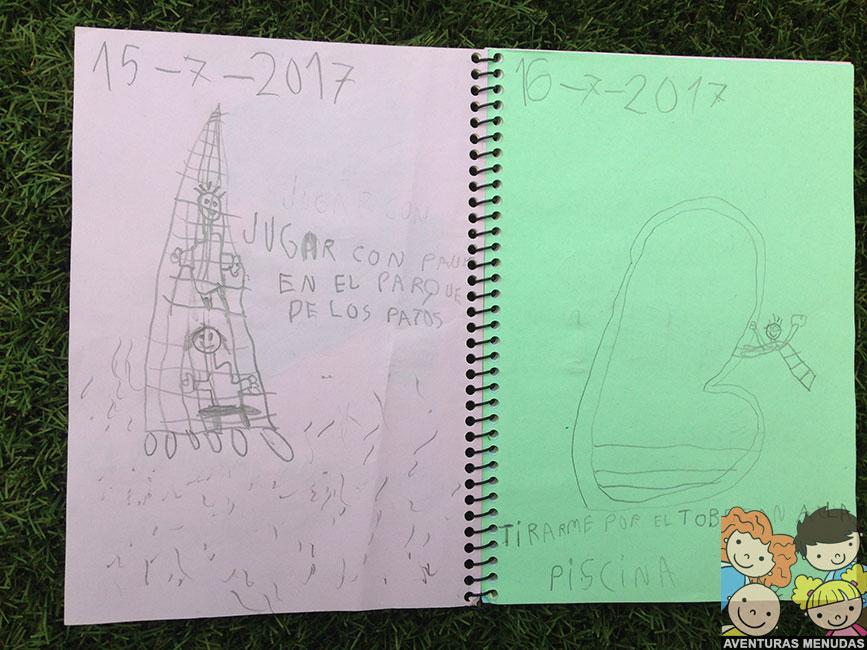 sirve de un recuerdo increíble tanto para ellos como para nosotros de ese verano, cómo dibujaban, como escribían y además, qué cosas les gustó hacer esos días. Recordarán a posteriori lo que pasó, donde fueron, qué vivieron y ya no solo con fotos, sino con sus propios dibujos y palabras.