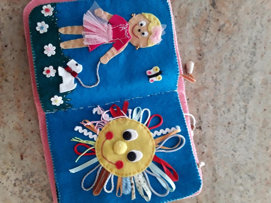 A la muñeca se le quita y pone el vestido y el sol con los rayos con variados lazos y lanas para diferenciar texturas