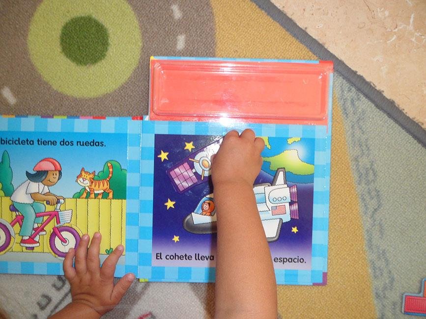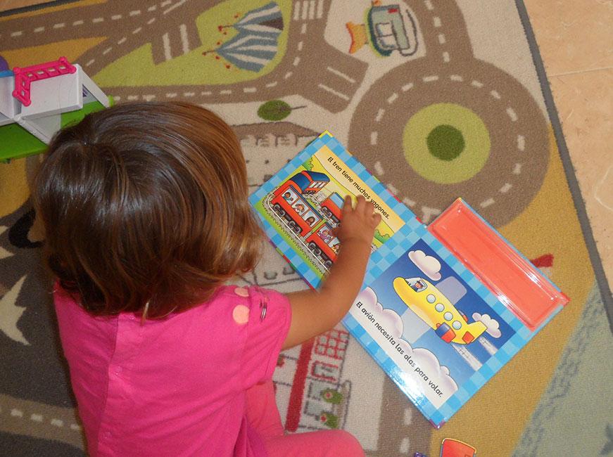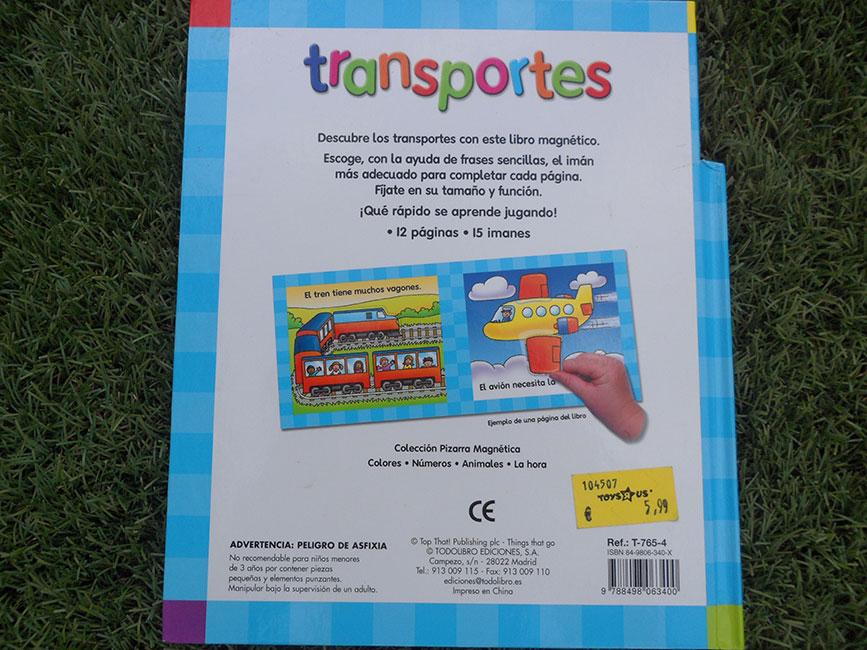 Se basa en unas páginas y piezas magnéticas que hay que ir colocando en los diferentes medios de transporte.