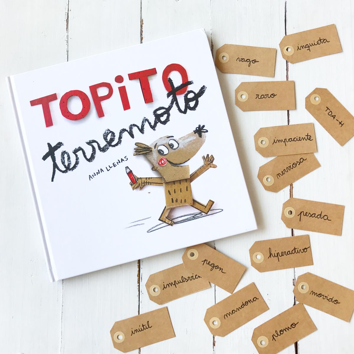 Topito terremoto cuenta la historia de un pequeño topo que no deja indiferente a nadie. Cuando Topito se despierta, se acaba la calma en la madriguera. Va arriba y abajo, lo toca todo, se distrae, pierde cosas, las rompe, no para quieto ni un momento. Le dicen que es “inquieto, hiperactivo, nervioso, pesado, impulsivo…” Sus padres están preocupados y sus maestros desesperados. Por suerte, se encuentra con una hada del bosque que tiene una mirada distinta y que sabe ver en Topito aquello que lo hace especial del resto.