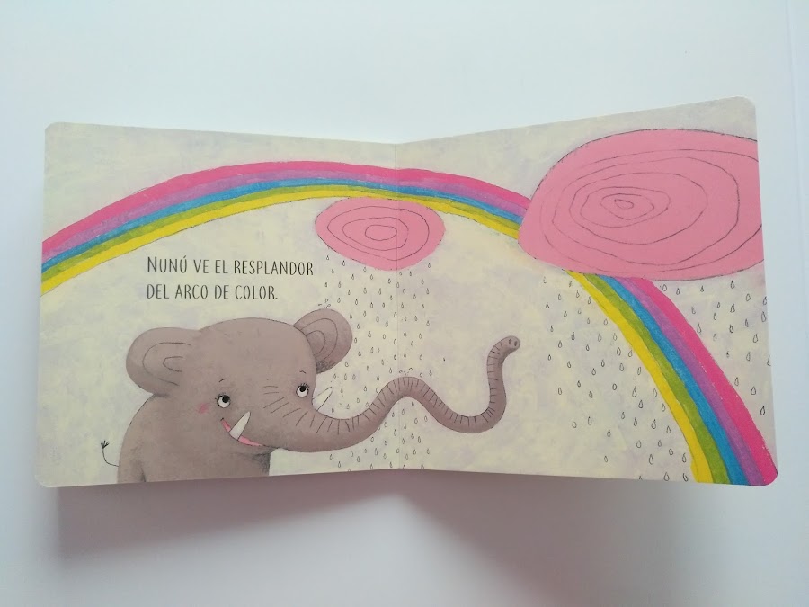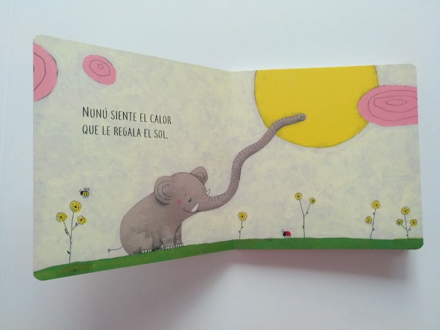 En este, el elefante Nunú experimenta y disfruta con los cinco sentidos a través de la naturaleza: el calor del sol, el sabor de los frutos, el canto de un pájaro, el aroma de las flores, el colorido del arco iris.