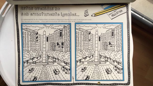 Cada página tiene una actividad, relacionada con algo para aprender. Por ejemplo, con un poquitín de orgullo pude contarle a Luna que la avenida más ancha del mundo se encuentra en mi país...