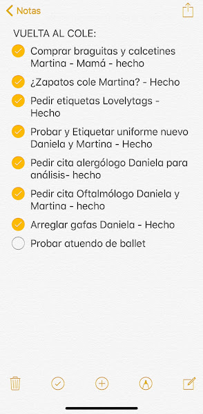 Lo ideal es hacer listas específicas: lista para la vuelta al cole, lista para fiesta de cumpleaños, lista de tareas semanales, etc.