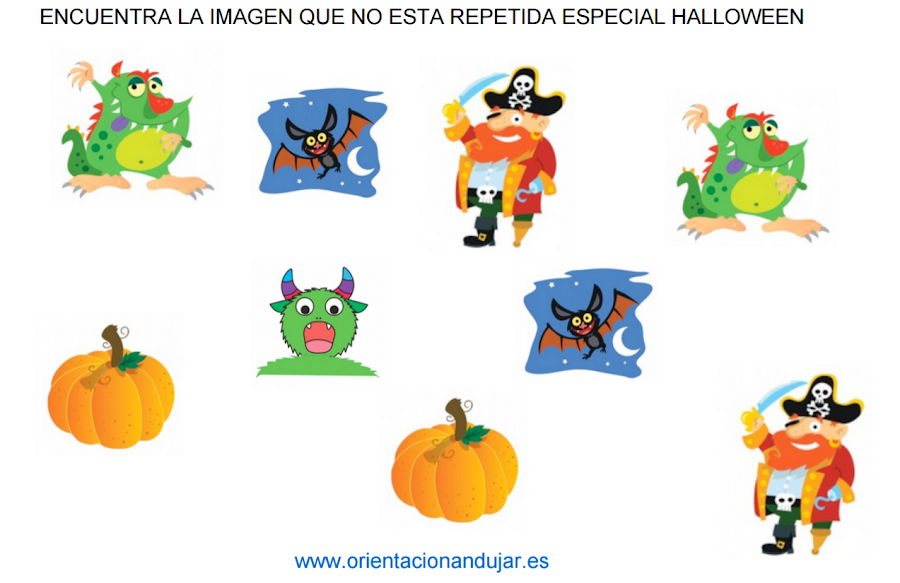 FICHAS DE HALLOWEEN PARA TRABAJAR LA ATENCIÓN gracias a Orientación Andujar.