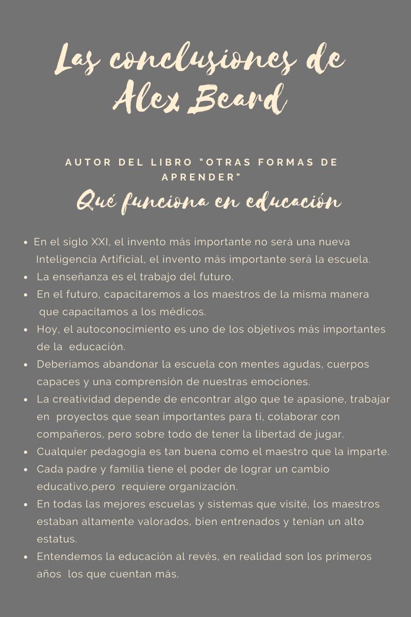 Hace unos meses me llegó el libro “Otras formas de aprender. Lo que funciona en educación y por qué” de Alex Beard, de la mano de Plataforma Editorial. Me cautivó enseguida y me lo leí en apenas unos días.
