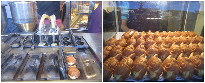Y recorrer Chinatown, que aunque no nos atrajo nada comer allí al ver los patos laqueados colgados en los escaparates, sí que nos llamaron la atención (y tuvimos que probar) unos pececitos rellenos de crema elaborados mecánicamente allí mismo