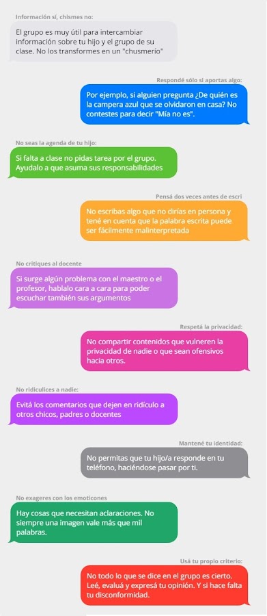 Recientemente un colegio de Buenos Aires, ha publicado en su red social oficial un manual de uso de WhatsApp para madres, ya que muchos de los mensajes que se reciben no aportan realmente información útil en el grupo. Publicar una imagen de una prenda de ropa perdida implica recibir al menos 25 mensajes de mamis con un "De mi hijo no es" como respuesta ¡Conozcámoslo para saber como usar esta gran herramienta de manera correcta!