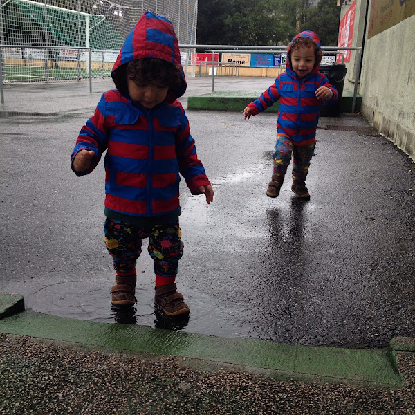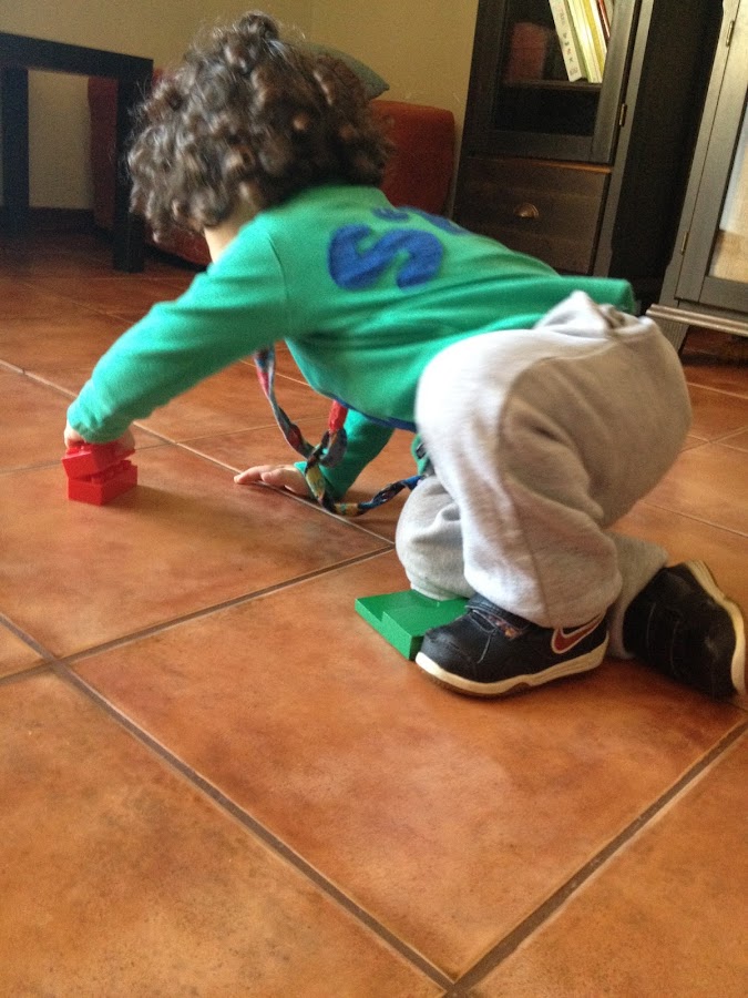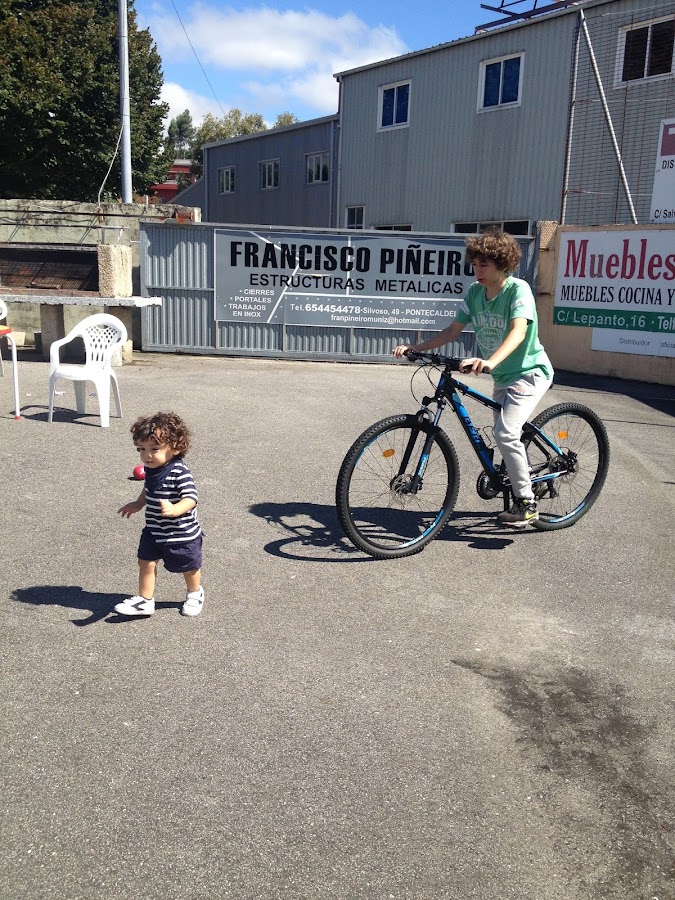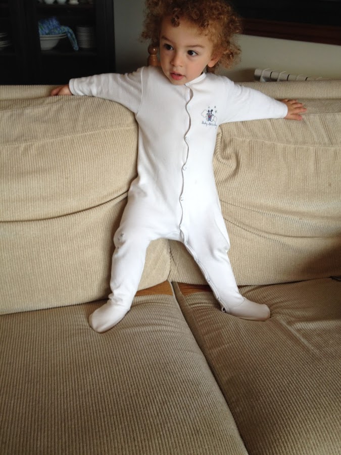 Con respecto a su desarrollo corporal y habilidades adquiridas, ahora empiezo a notar que su cuerpecito se va afinando y empieza a perder los típicos pliegues de los bebes. Su equilibrio es una pasada, caminan perfectamente hacia adelante y atrás, corren, Sebas de puntillitas. Suben escaleras, Sergio las sube sin ayuda y Sebas se pone en posición de gateo.