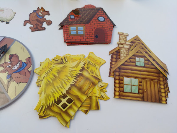 Cuando cae en alguna de estas casillas debe coger una pieza de la casa de paja, madera o ladrillo. Cuando consiga dos piezas de una misma casa la puede montar.