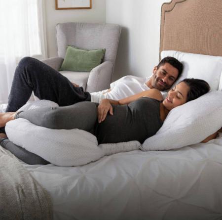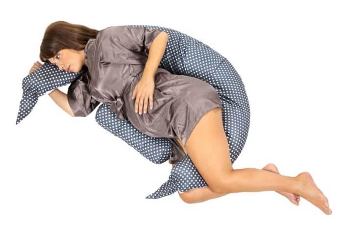 Reduce los dolores de espalda y mejora la calidad del descanso. Te ayuda a adoptar la postura de recostada sobre el lado izquierdo con las piernas ligeramente dobladas (esta postura se recomienda para las embarazadas, porque ayuda a mejorar la circulación y a que el bebé no presione órganos internos).