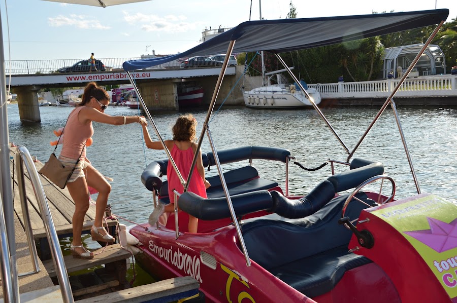 Los Barkitos de Empuriabrava; ofrecen excursiones para que tu puedas llevar diferentes tipos de barcos, según sea el tamaño del grupo y según sea también el tipo de barco que se quiera alquilar, con motor, eléctrico etc...hay muchas opciones, las cuales te explican allí, así que tu puedes elegir y decidir cual es la que mas te gusta pero si lo que te apetece es realizar el mismo u otro recorrido y que te lleven, también puedes elegir el Barco colectivo con patrón incluído que te llevará aún mas lejos, éste llega hasta Roses y luego te trae de vuelta a Empuriabrava.