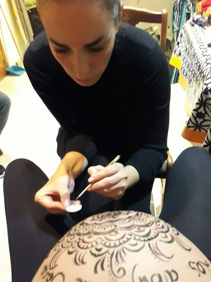 Sara empezó hace escasas dos semanas a pintar barrigas a amigas embarazadas, y lo que empezó como algo anecdótico se ha convertido en algo que va más allá. está despertando la artista que lleva adentro. Un día le pidió a una amiga que si la dejaba pintar su barriga, y esta creyó que le pintaría algo divertido pero cuando se puso manos a la obra terminaron alucinados mirando su creación.