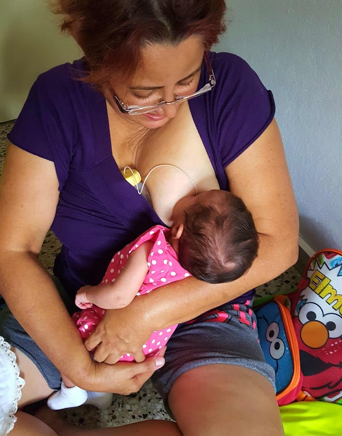 Mi mamá - Siempre ha sido una mujer atrevida y un día que la bebé lloraba, se la pegó a la teta y logró tranquilizarla. Y asi lo ha seguido haciendo.