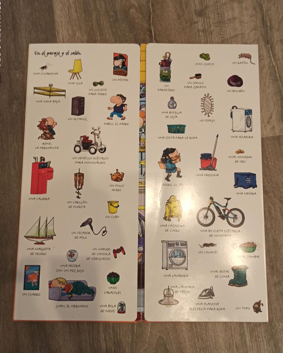 Se trata de una versión para niños pequeños del ¿Dónde está Wally?. Al principio de cada página se proponen una serie de objetos que el niños tiene que buscar en el dibujo. Con esto se trabaja la concentración, la memoria y el lenguaje.