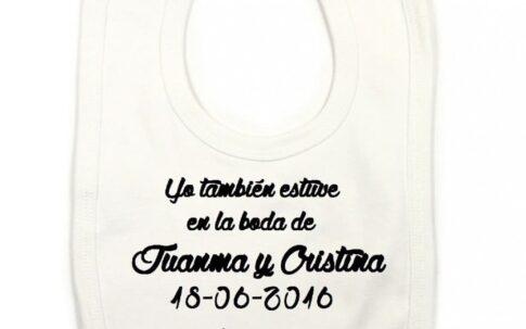 Tenemos una gran cantidad de baberos personalizados para bodas y eventos, además ofrecemos a opción de personalizarlo como quieras, puedes cambiar imagen, frases, texto, lo que desees y sin sobre costes. Otro regalo para invitados embarazad@s que van a vuestra boda.Babero de algodón 100% sujeción con velcro con original dibujo y mensaje ideal para regalar a embarazadas y bebés.