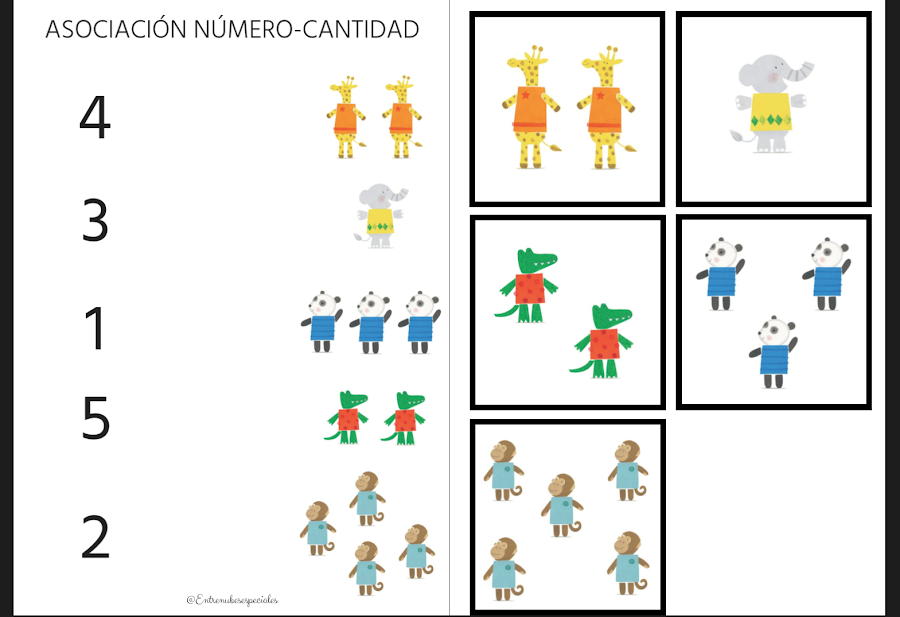 Asociar los diferentes números con su cantidad correspondiente de personajes utilizando el imprimible (Haz click en la imagen para descargar).