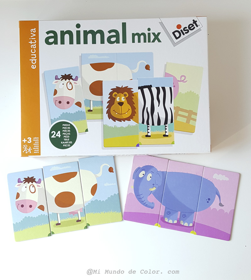 Diset Animal mix: Este fue el primero que destape y la verdad es que lo primero que me gusto es que no tiene las pestañas que normalmente traen los puzzles para encajar las piezas, este es mas bien como trípticos y me parecía que podía ser mas fácil, y "de hecho lo es" poner una piezas al lado de la otra.