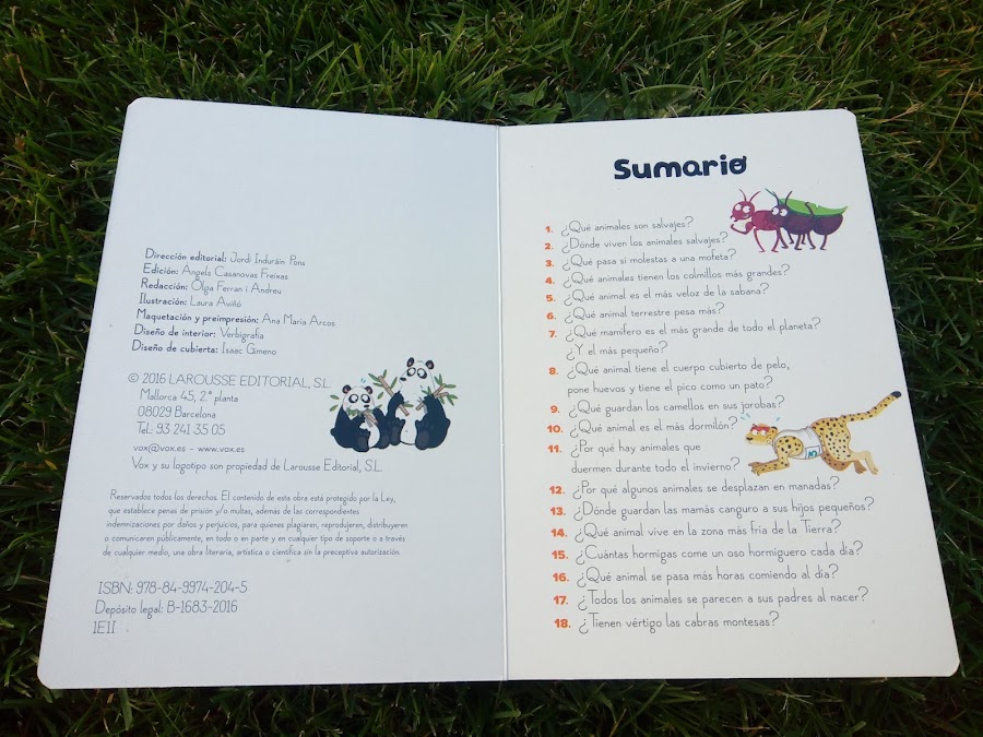 Después del sumario vienen las 58 preguntas y respuestas a los por qués mas habituales sobre animales.