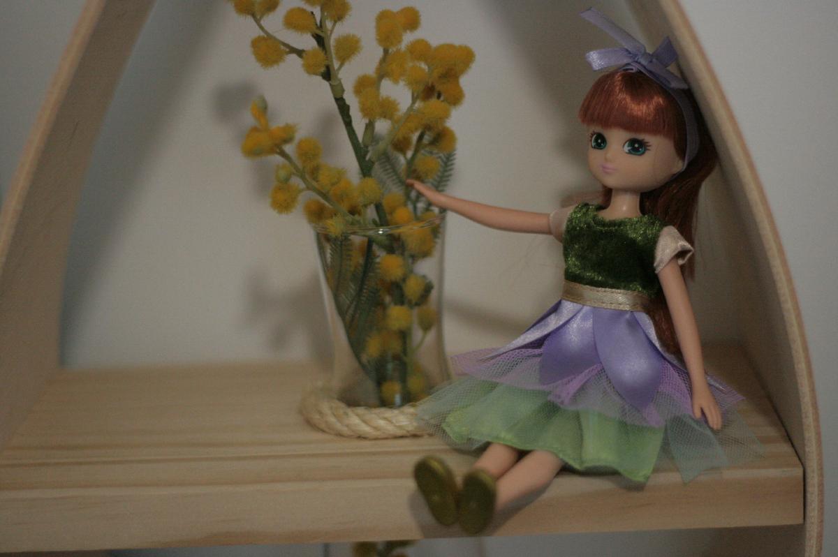 ¿Qué me gusta de ella? por un lado que invita a nuetsros niños/as a soñar, a imaginar mundos mágicos, a imaginar cómo viven las hadas u otros seres del bosque, y porqué no… a entender que en la naturaleza viven multitud de seres importantes y necesarios, no mágicos, pero que debemos cuidar. Creo que puede ser una muñeca con la que hablar del respeto hacia el medioambiente.