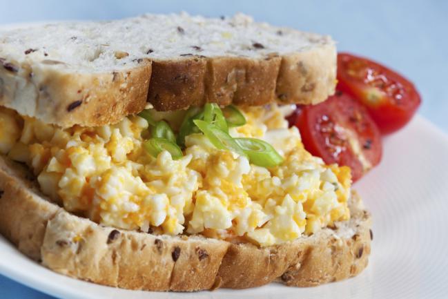Otra variación a los sándwiches es mezclar dos huevos duros con mayonesa, pimienta y sal y servirlo con pan de granos enteros o trigo integral. Súper rápido, sencillo y de sabor muy agradable, el favorito de mi hijo menor Diego. Tendrá los excelentes nutrientes del huevo. Acompáñalo con la fruta que más le guste para el postre.