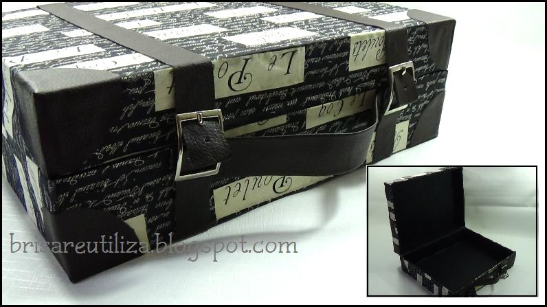 -Cortamos 4 tiras de 2 ó 3 cm de ancho (el largo depende del tamaño de la maleta) de piel o polipiel para decorar, pegamos las hebillas en dos de las tiras en los bordes y las pegamos en la maleta -Hacemos agujeros en las dos tiras que nos quedan para cerrar la maleta con las hebillas Y LISTO!!!