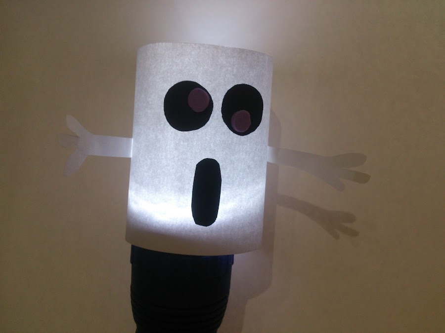 Y AL FANTASMA CON EL QUE DECIDIMOS EXPERIMENTAR, PEGÁNDOLO EN UN FOLIO Y METIÉNDOLE UNA LINTERNA POR DEBAJO CON LAS LUCES APAGADAS. ¡ESTABA DE MIEDO!