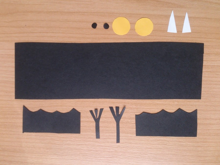 – Cartulinas blanca, negra, color carne, naranja, morada y amarilla.