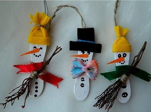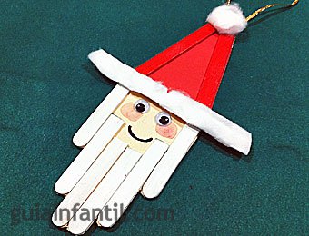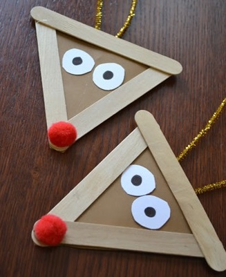 Tres palitos de helado, un pom-pom rojo,cartulina marrón, cola y un cordel dorado y...¡listo!