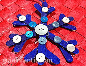 A los peques les encantará tener unos adornos personalizados, y este precioso copo de nieve con palitos de helado será un éxito seguro.