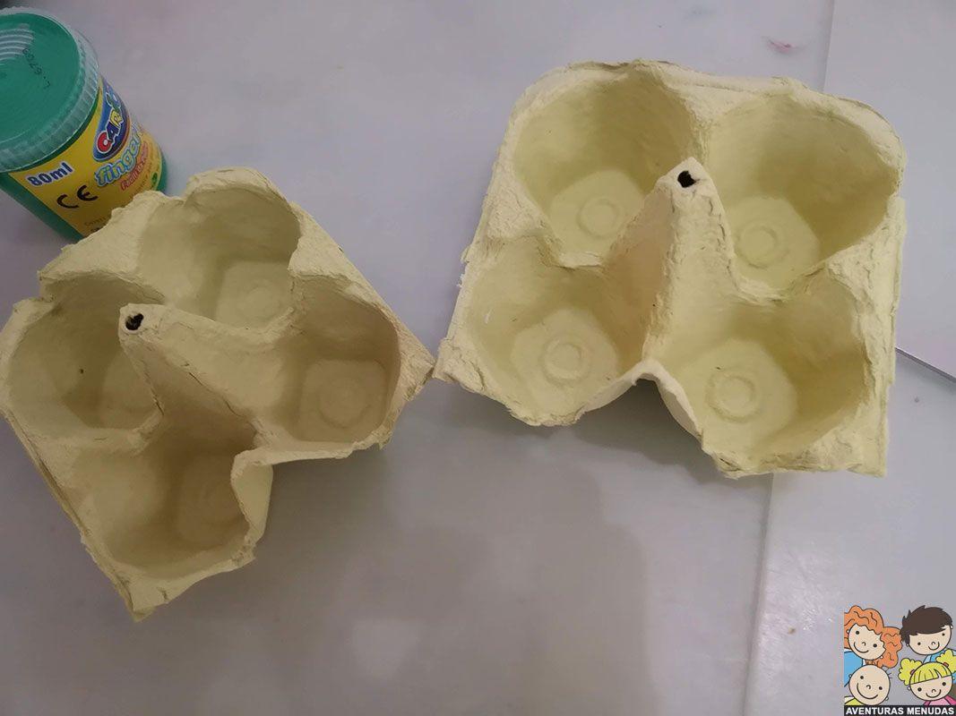 Lo primero recortar las hueveras de manera que queden 4 huecos, de manera cuadrada.