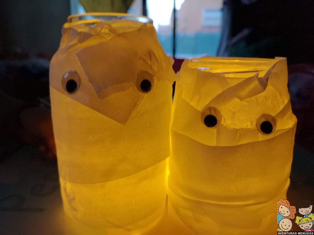 Y listo. Podemos colocar una velita de esas de pila dentro y ver el efecto que da al encenderla y apagar la luz. Queda muy chulo!!!