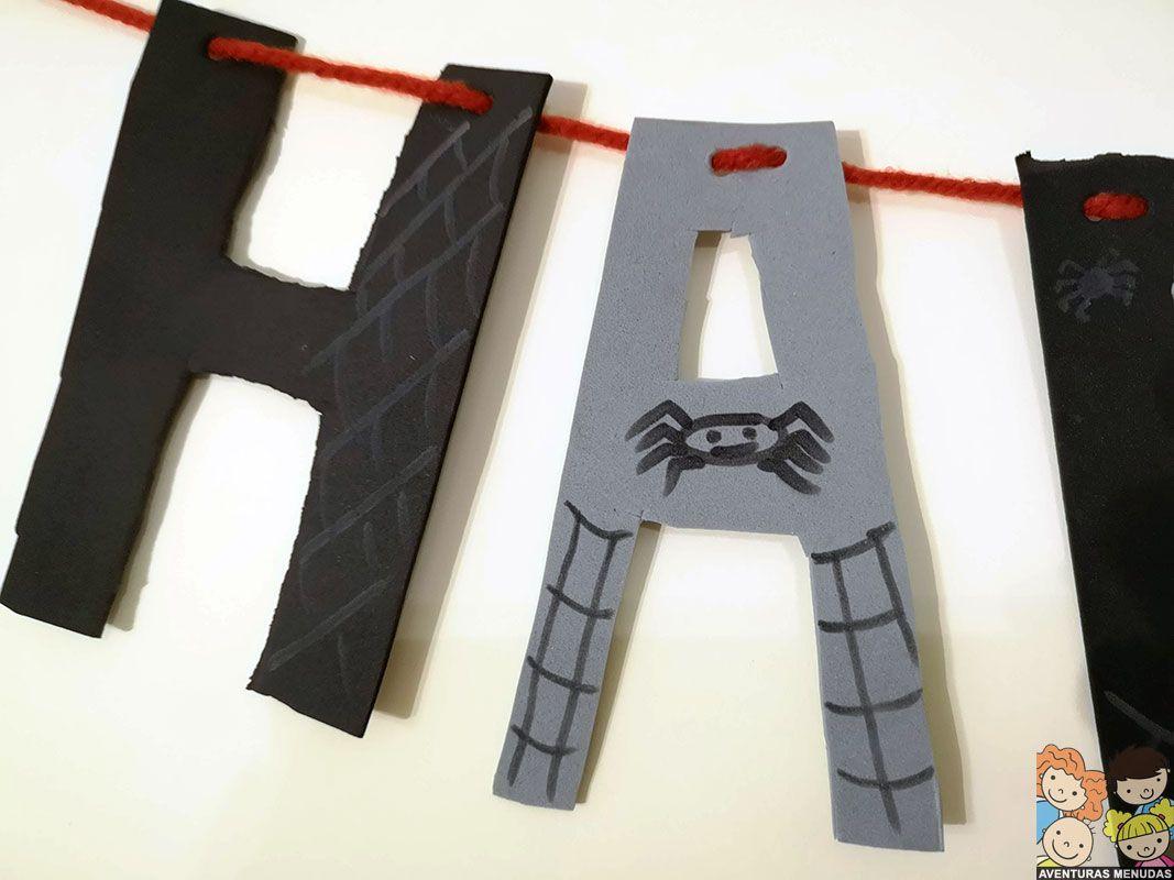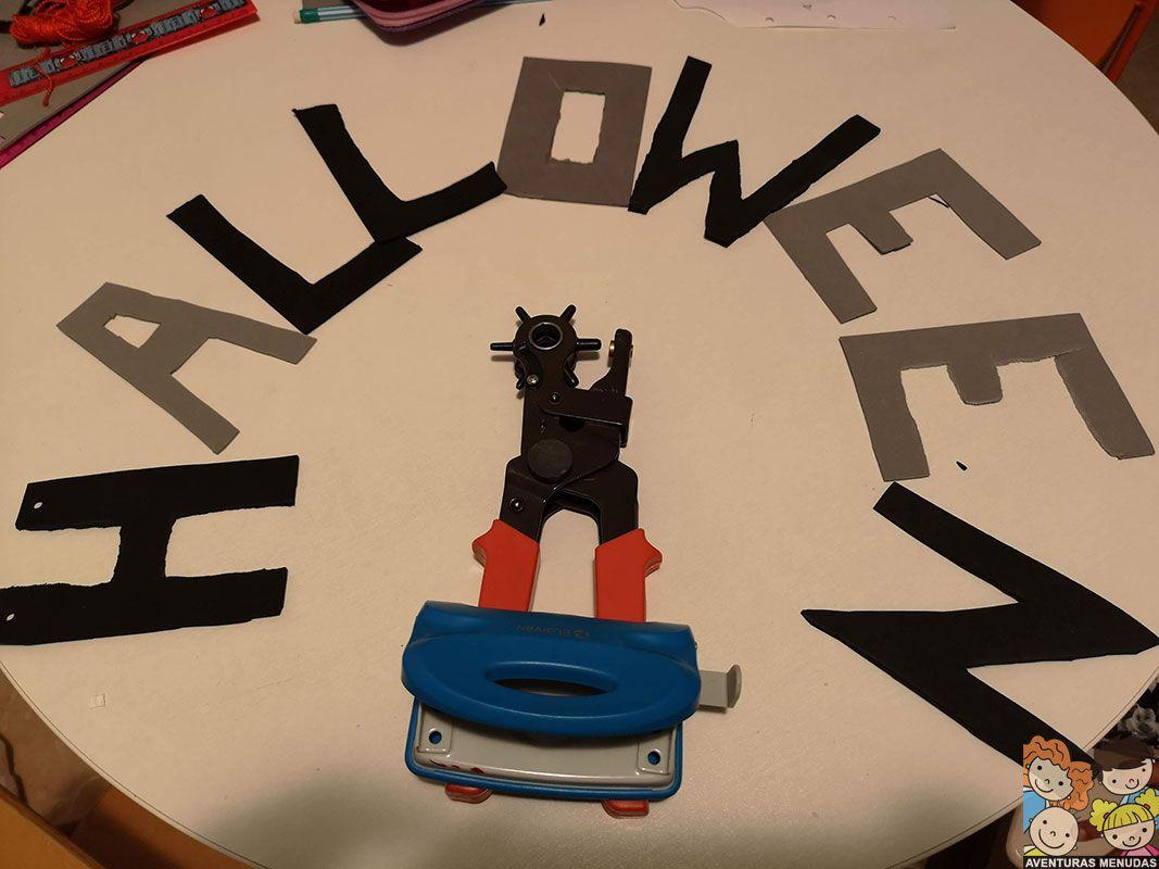 Marcamos y recortamos las letras HALLOWEEN en la goma eva.