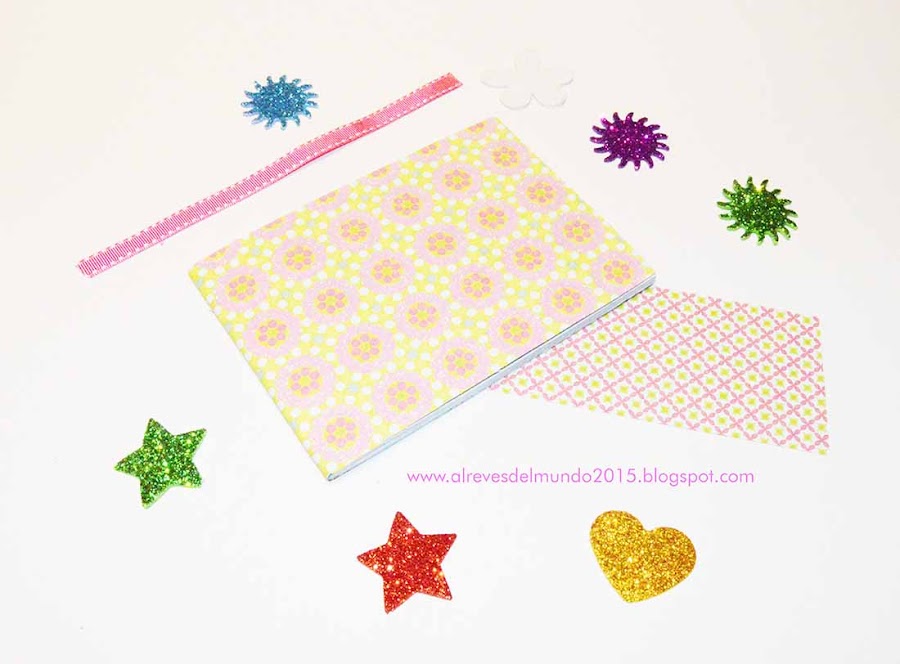 PASO 1 - recorta el papel "bonito" un poco más grande de la medida del cuaderno