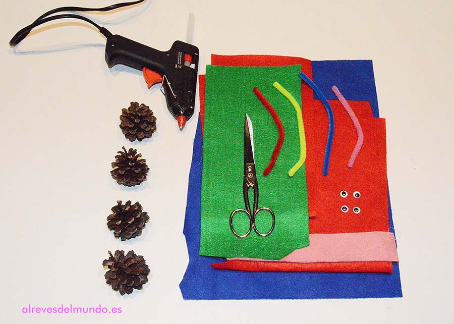 - Recortar las piezas de fieltro necesarias para decorar nuestras "mascotas"