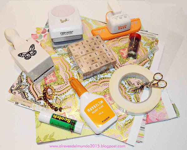 - Papel tipo cartulina decorado ( yo he usado papel scrap decorado de doble capa)