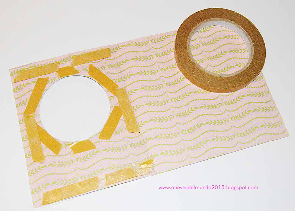- Corta el círculo central donde va la ventana transparente del tamaño que te guste (si no tienes cutter circular, usa un vaso). En mi caso es de 8 cm. de diametro.