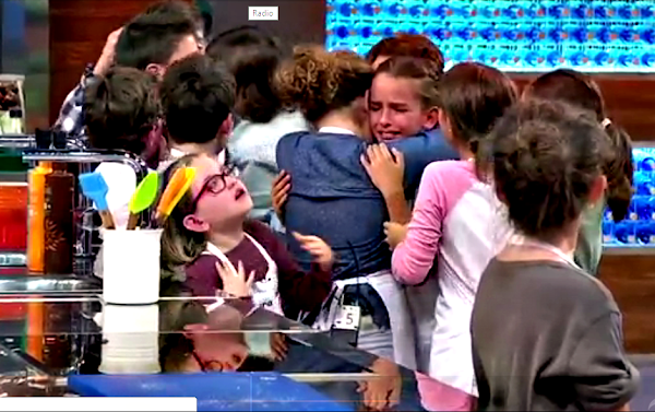 Y ya en la cama, intentando hipar bajito para que el Santo, que llevaba un par de horas en el mismo estado que la Princesa, me preguntaba ¿es necesario someter a los niños a este disgusto tan grande? Mira aquí el disgusto ¿Es no es para llorar? Y todo, ¿en busca de qué? ¿fama? ¿dinero? ¿oportunidad de aprender a cocinar? Para esto último ya han sacado los campamentos MasterChef, que me parecen fantásticos, o cantidad de cursos de cocina para niños.