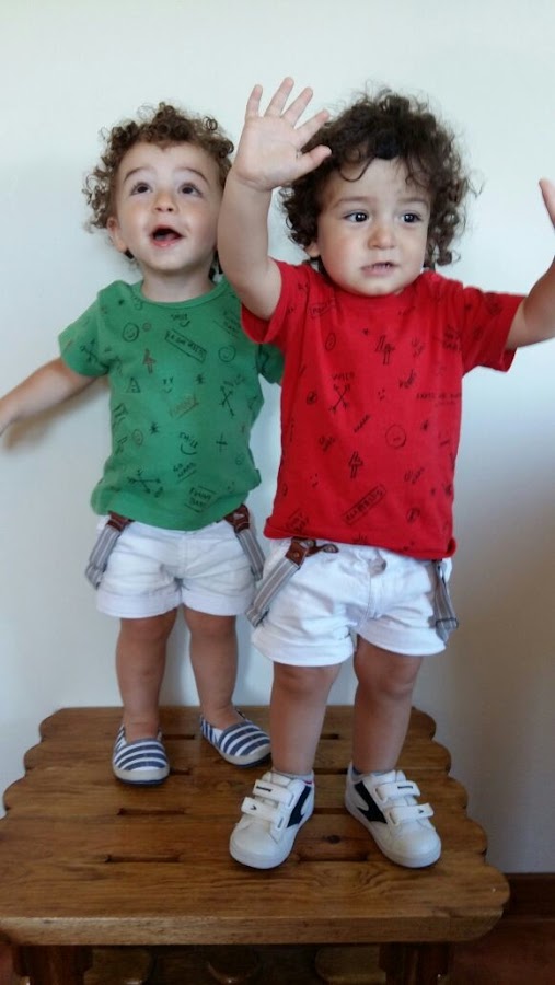 Sus outfits eran casi iguales pero cambiando el color (ya sabéis que no soy partidaria de que los gemelos o mellizos vistan igual): unas preciosas bermudas con tirantes de Zara Kids, con las zapas tuvimos algún problemilla, porque me enamoré de esas alpargatas de H&M que lleva Sergio, pero solo se las probé a él y a Sebas le van grandes, por eso hicimos un cambio de última hora y Sebas lleva unas preciosas zapas de Boomerang, si las quieres comprar pincha aquí.