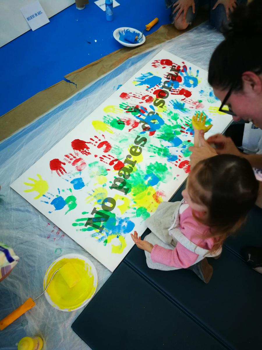 Belive in Art Zaragoza, se acercó con una muestra del proyecto solidario que realizan en la planta de oncopediatría del hospital infantil de Zaragoza y nos invitó a estampar nuestra pequeña manita en un precioso mural lleno de color.