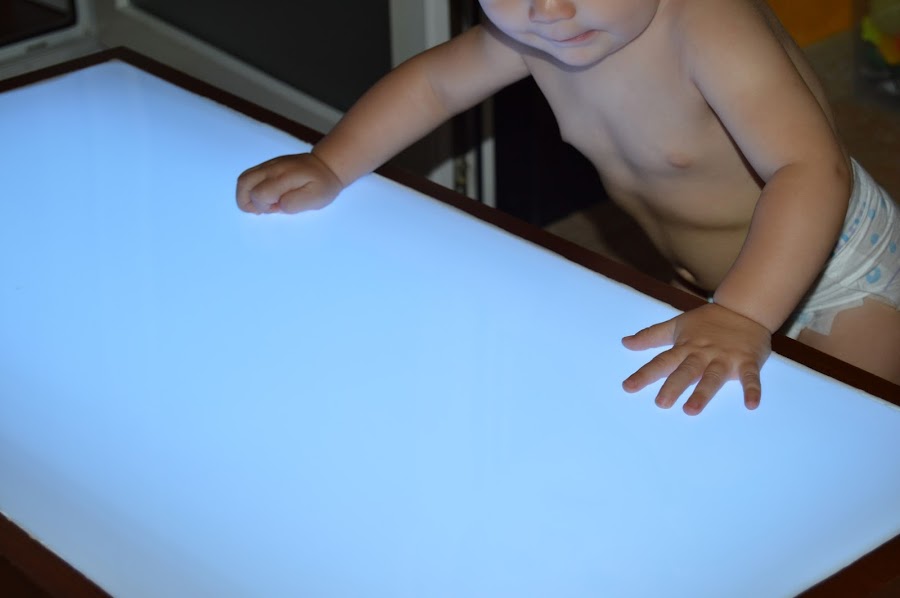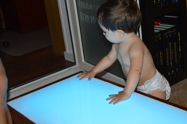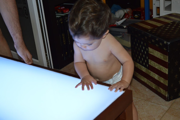 En otro post os enseñaré cómo jugamos y aprendemos con nuestra mesa de luz. Tenemos hechos materiales caseros muy muy baratos y seguro que podéis hacer vuestros propios materiales reciclando cosillas que tengáis por casa.
