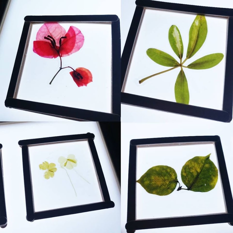 Para hacerlos solo NECESITAMOS: Flores naturales, hojas, musgo...todo lo que encontremos, papel de plastificar, plastificadora y depresores de madera.
