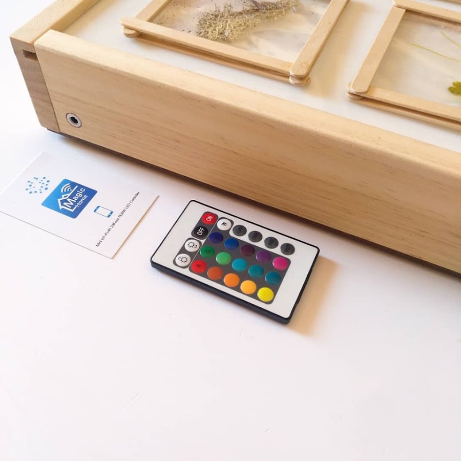 El paquete incluye 1 Cajón de luz, 1 Adaptador de corriente 12v, y un mando a distancia con pila incluida.